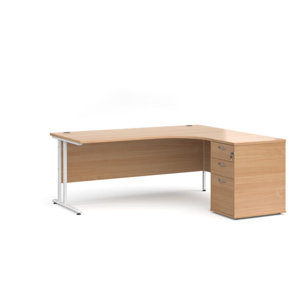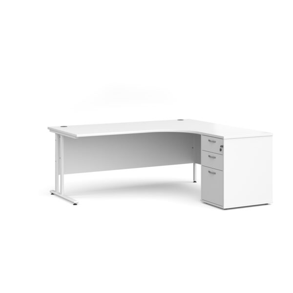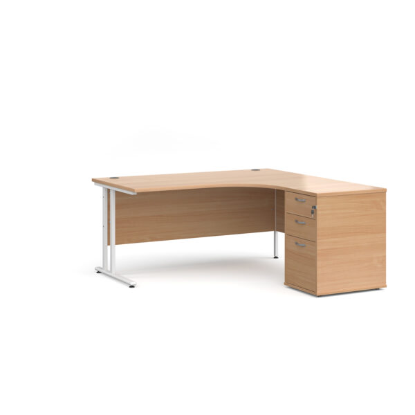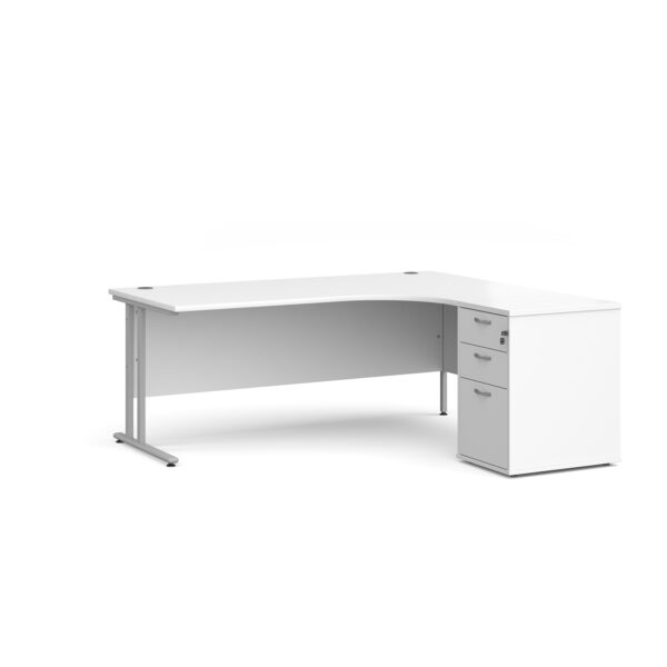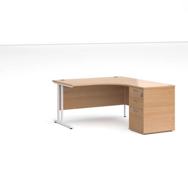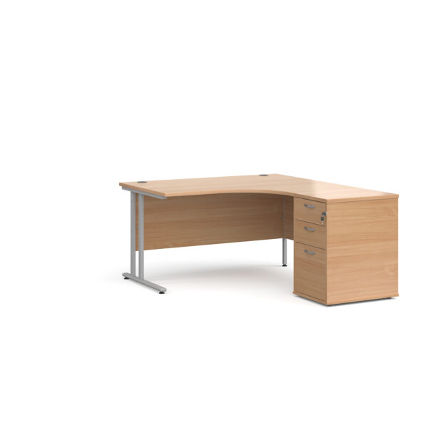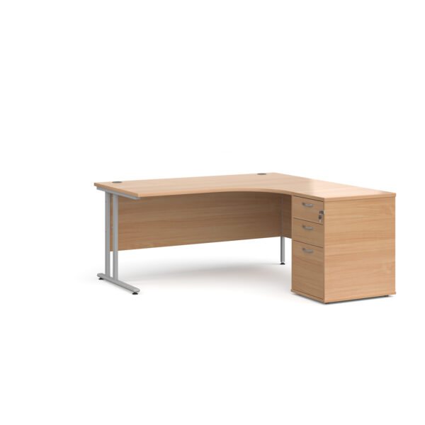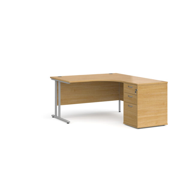 Invest in the future of your office with the Porto 25 SL Right Hand Corner Desk with 3 Drawer Desk High Pedestal—where functionality meets modern elegance.