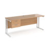 A reliable and refined choice for modern workspaces, the Porto 25 Straight Desk combines contemporary styling with practical functionality. Featuring a 600mm deep, 25mm thick melamine desktop, this desk offers a sturdy and spacious surface suitable for daily use. The welded double upright cantilever leg frame is powder-coated for a sleek finish and ensures excellent strength and stability. A single 2-drawer pedestal provides convenient storage for essential office supplies, helping to maintain a tidy and efficient work area. With a variety of colour options available, the Porto 25 desk fits seamlessly into any professional environment.