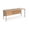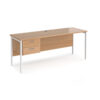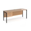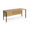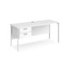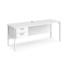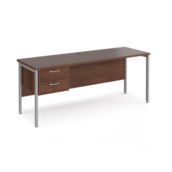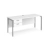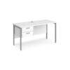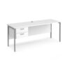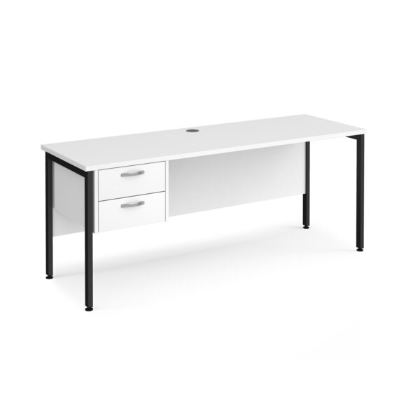 A modern office essential, the Porto 25 desk range offers minimalist styling and versatile colour options that blend seamlessly into any workspace without overwhelming it. This model features a fully welded H-frame leg design, providing robust stability and strength. Available in black, silver, or white finishes, the frame perfectly complements the durable 25mm melamine desktop. Included is a practical 2 drawer pedestal for convenient storage, making this desk both stylish and functional.