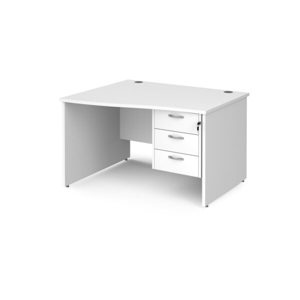 Crafted with a robust 25mm melamine desktop and full modesty panel, the desk offers long-lasting durability and a clean, coordinated appearance. The traditional panel end legs add structural support and privacy, while the integrated 3 drawer pedestal delivers essential storage for files, stationery, and office accessories.