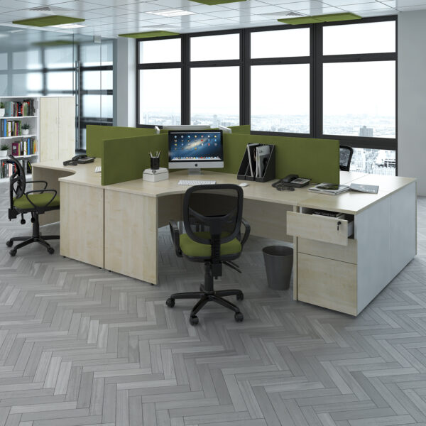 Built with a sturdy 25mm melamine desktop and full modesty panel, the Porto 25 range combines practical strength with contemporary aesthetics. The panel end legs provide extra privacy and a cohesive appearance, while the integrated pedestal offers convenient, secure storage for essential documents and office supplies.