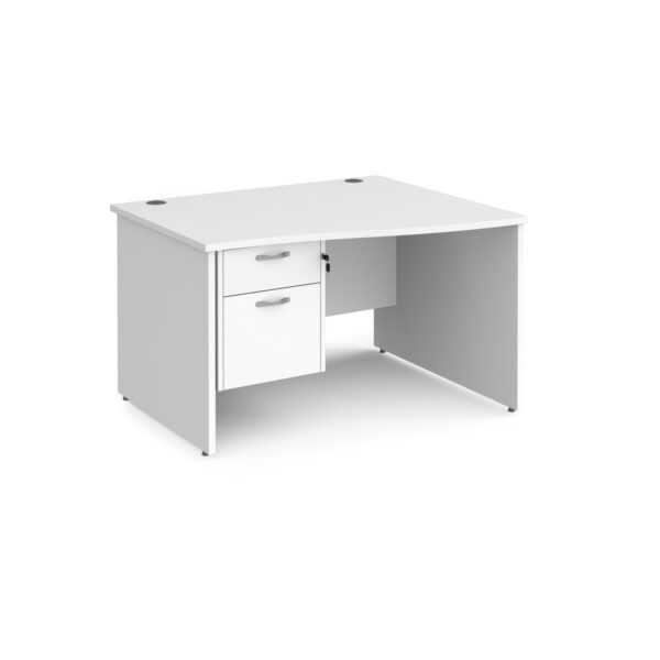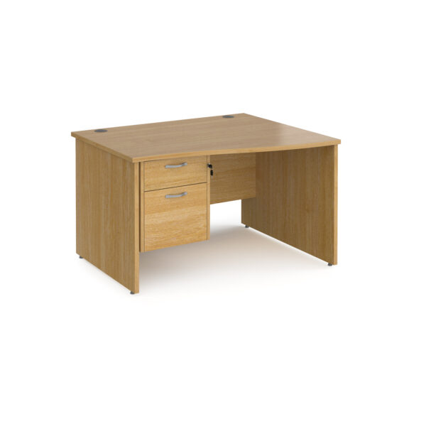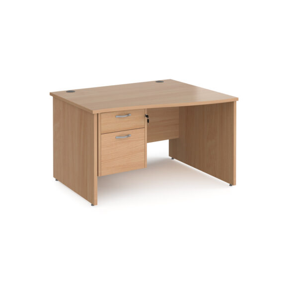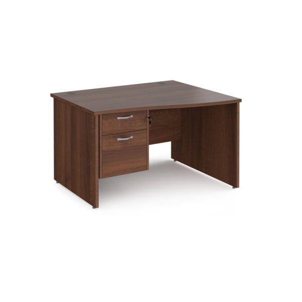 Enhance your workspace with the Porto 25 Right Hand Wave Desk, complete with a 2 drawer pedestal and classic panel end leg design for a professional, streamlined look. This desk offers a spacious curved work surface, ideal for maximizing productivity in modern office settings.