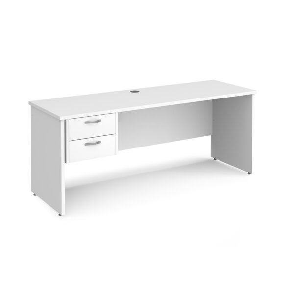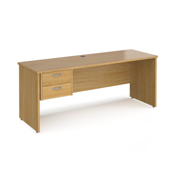 The Porto 25 Straight Desk combines modern minimalism with everyday practicality. Featuring a traditional panel end leg design and a robust 25mm melamine worktop, this desk delivers strength and style in equal measure. The included 2-drawer pedestal provides convenient storage for essential office items, helping to keep workspaces tidy and efficient. At 600mm deep, it’s ideal for offices where space is at a premium, while still offering a professional, cohesive look for any working environment. Available in multiple colour finishes to complement your office décor.