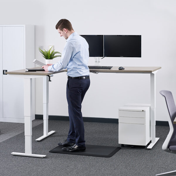 The Advance Corner height adjustable desk combines all the benefits of the popular Advance range with the added functionality of a spacious corner design. Featuring a smooth and powerful triple motor system, it delivers seamless height adjustments with integrated anti-collision safety technology as standard. Ideal for executive environments, the extended surface area provides ample space for peripherals such as printers and storage. With a height range that lowers to just 640mm, it’s also fully accessible for wheelchair users, making it a versatile and inclusive choice for any modern workspace.