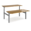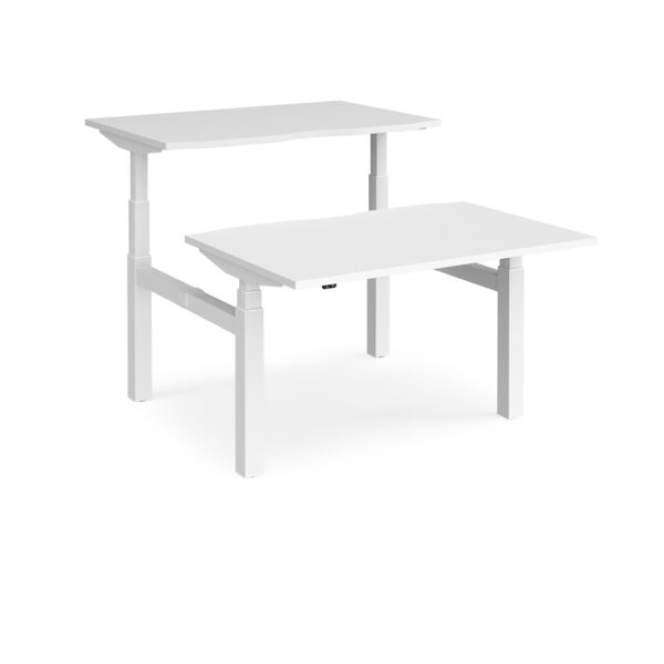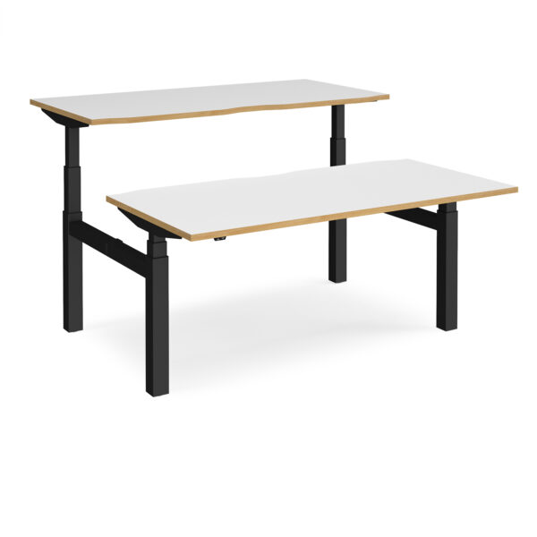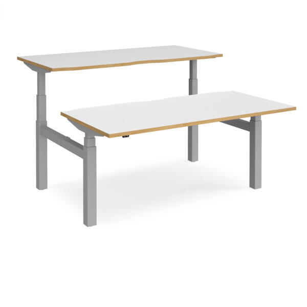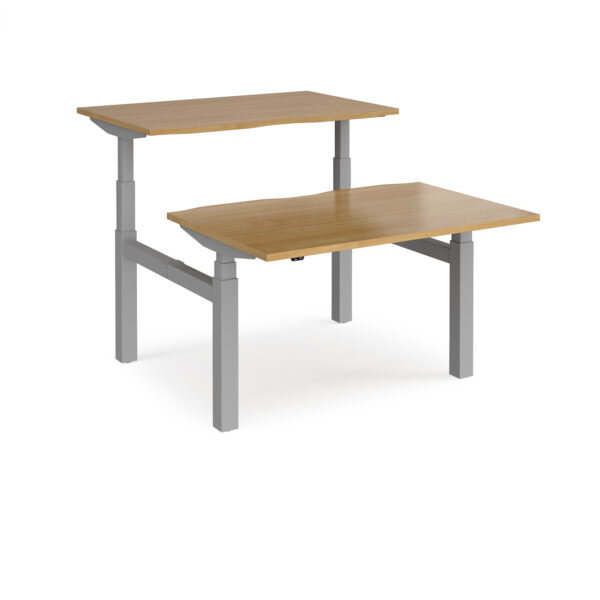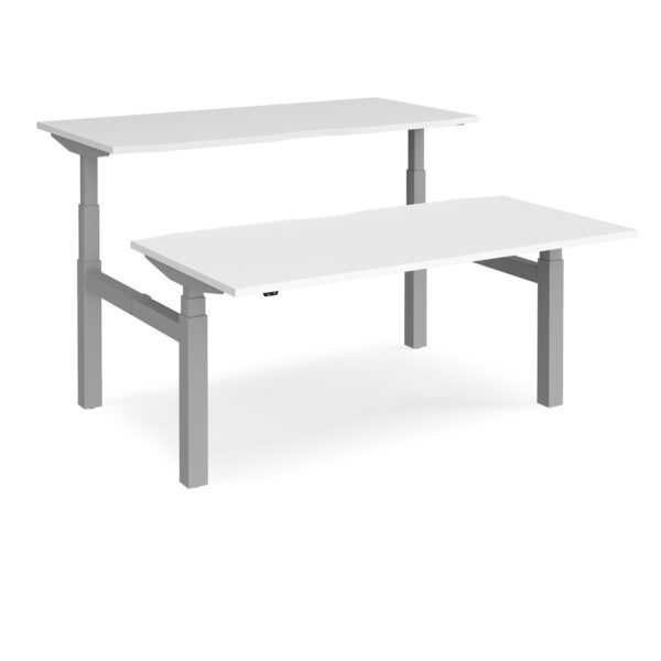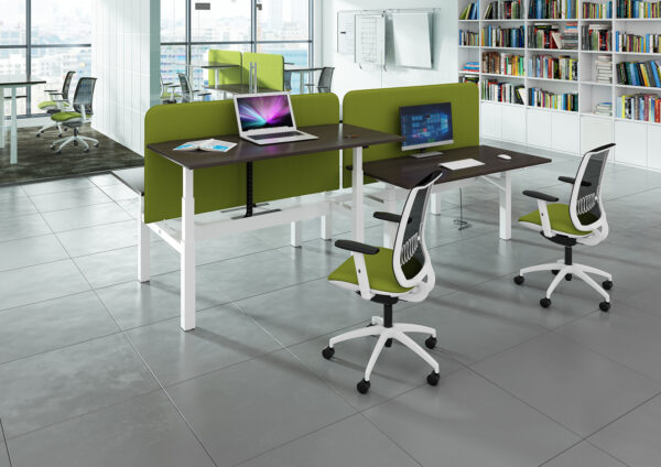 The Elev8 Touch back-to-back desks offer a practical solution for employees who spend long hours seated, encouraging more movement throughout the workday. These sit-stand desks enable colleagues to collaborate easily during standing meetings and then adjust their desks back to a seated height for focused tasks. Designed to promote healthier work habits, the Elev8 Touch desks blend functionality with modern office needs.