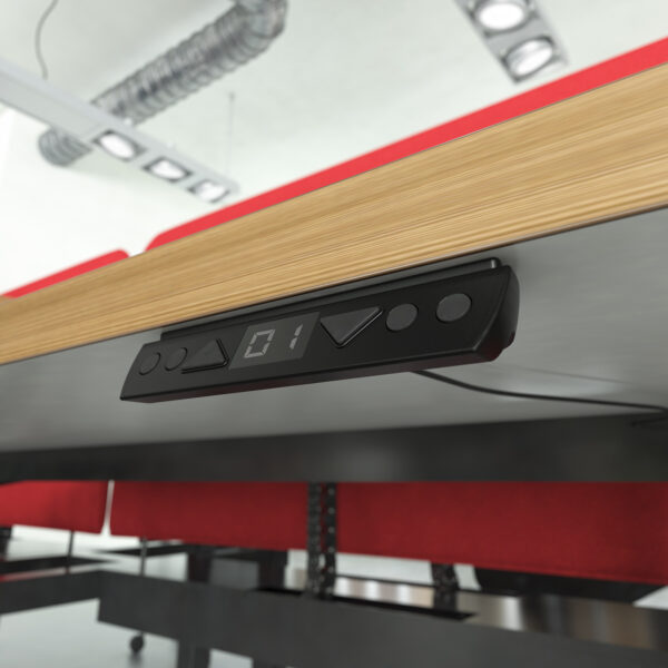 With the touch of a button, the Elev8 digital control box enables users to raise or lower their desks to preferred height settings, supporting fluid and natural movement throughout the working day. Designed for versatility, the control unit can be retro-fitted to Elev8 Touch single and back-to-back desks, offering an enhanced sit-stand experience. The digital interface features a three-digit display showing the current desk height in centimetres and allows manual adjustments via up and down arrows. Users can store up to four custom height settings, while the sleek and minimal design ensures smooth functionality and a consistent, clean profile.