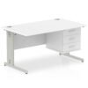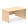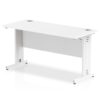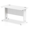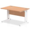 The Straight Cable Management Office Desk, measuring 800mm wide, features a 25mm thick desktop available in six attractive finishes: maple, oak, grey oak, beech, walnut, and white. Designed for practicality, it includes a wire management panel with two cable ports to keep your workspace neat and organized. The heat-resistant melamine tabletop ensures durability and easy cleaning, complemented by an 18mm modesty panel for privacy and 2mm protective ABS edging to prevent wear and damage. Height-adjustable feet provide stability on uneven floors, while the desk is backed by a 5-year manufacturer’s warranty. From Impulse, a trusted contract brand known for delivering stylish and practical office furniture, this desk offers excellent value and quality—perfect for all your desking and storage needs without compromising on design or durability.