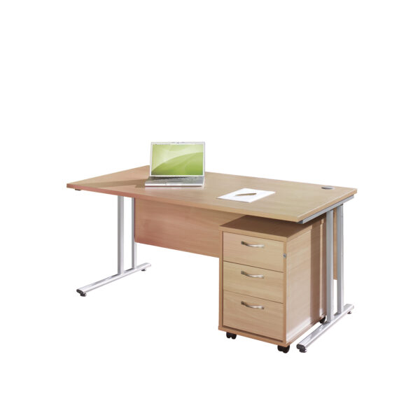 2 Drawer Mobile Pedestal With Silver Handles – 567mm High