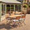 For those looking for a reliable, attractive, and space-saving solution to their outdoor or indoor dining needs, this table is an ideal choice. Made from robust wrought iron with stylish Robinia wood slats, this folding table offers a classic look that will bring out the best in any restaurant, bar or café decor. Its foldability is an unbeatable feature – simply collapse this sturdy unit down to save valuable floor space when not in use. Perfect for busy venues that need versatility and quality construction.