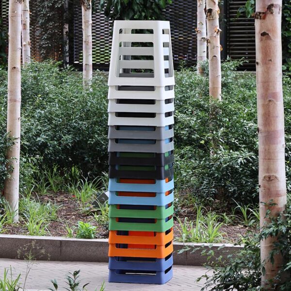 A set of 3 stacking stools redefining the modern plastic stool. With a sleek and versatile design, Besu combines aesthetics, functionality, and sustainability. Crafted from over 50% recycled plastic, these lightweight stools are perfect for indoor or outdoor use. Easily stackable for convenience and scalability, Besu is the perfect seating solution for any occasion. Make a sustainable choice with Besu’s durable and recyclable design.