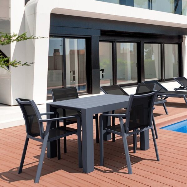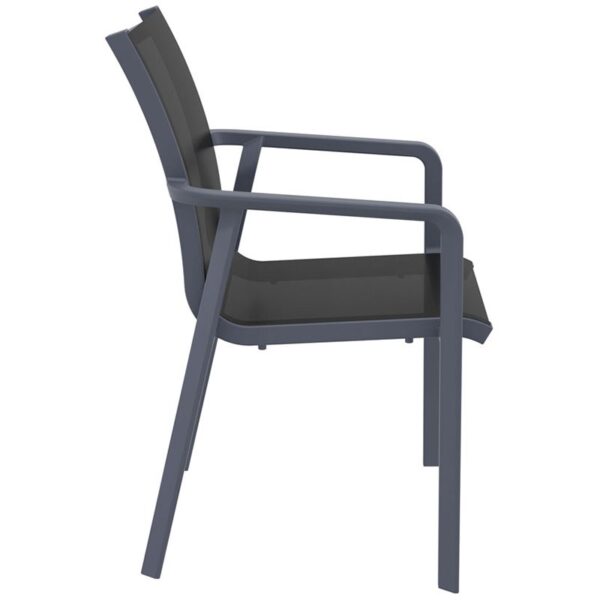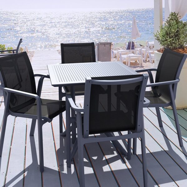 The Cortez armchair is the perfect addition to any outdoor space. Featuring a strong and durable grey frame, the seat and backrest are made from Black Batyline fabric, which is weatherproof and UV-protected. The fabric is also reinforced by glass fibre, making it resistant to both summer showers and strong sun. This versatile armchair is low maintenance and pairs perfectly with the Pacific sun lounger, as well as a wide range of other outdoor tables.