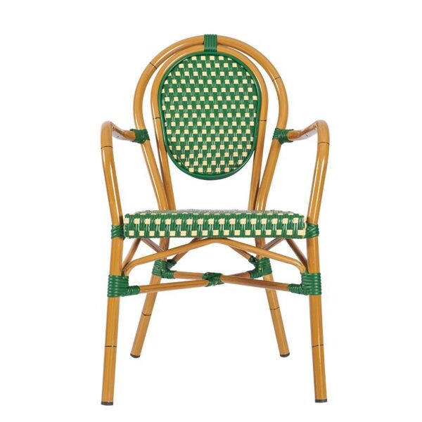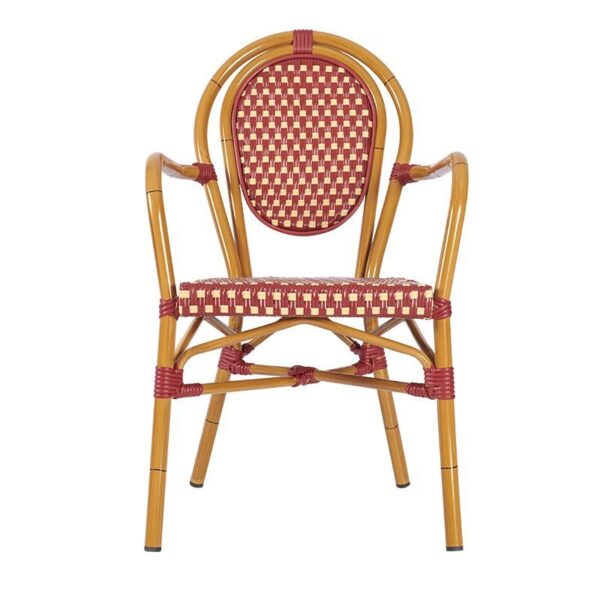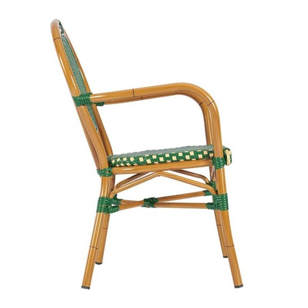 Indulge in the elegance of the Laguna Outdoor Stacking Armchair. This stunning bistro styled chair boasts a luxurious two-colour weave and a sleek aluminium bamboo effect. Its versatility makes it a perfect fit for any dining setting. Crafted with a cane effect aluminium frame, this chair is not only stylish but also stackable up to three chairs. The flat PE weave adds an extra touch of sophistication. Elevate your outdoor dining experience with the Laguna Outdoor Stacking Armchair.