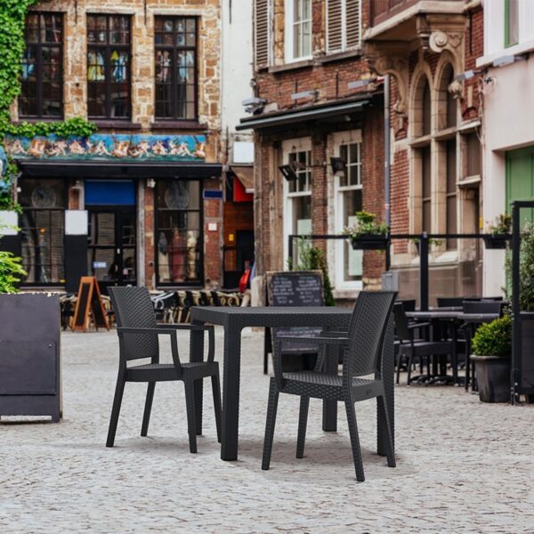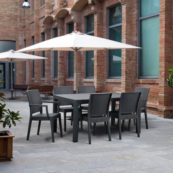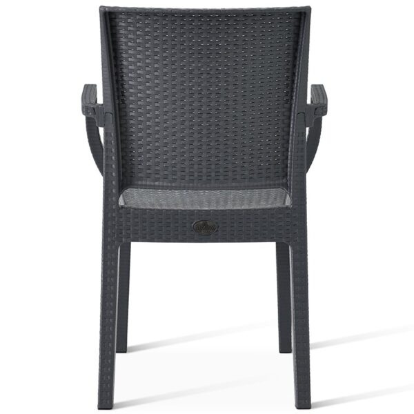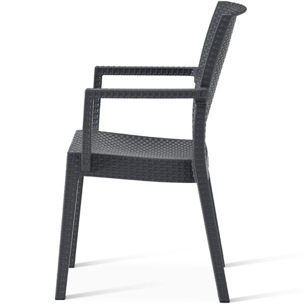 Made from polypropylene, it is designed to withstand the elements and last for years. The rattan effect gives it a modern look that will complement any restaurant, hotel, pub, bar, or café. The 5-year structural warranty shows just how confident we are in its ability to withstand heavy use. The easy storage stacking feature allows you to stack up to 8 chairs high, making it a great choice for busy venues.
