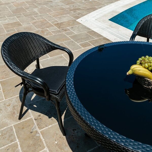 Looking for an arm chair that you can use indoors and outdoors? Look no further than the Olivia Arm Chair! This stylish, contemporary chair is made of injection moulded polypropylene, with a plastic wicker weave seat & back. It is easy to clean and stackable 6 high, so you can store it easily when not in use, making it ideal for cafes, restaurants, bistros, and hotels. it is easy to clean. And don’t forget, this product is CATAS Tested for contract use which means that it is built to last, and comes with a 5-year structural warranty.