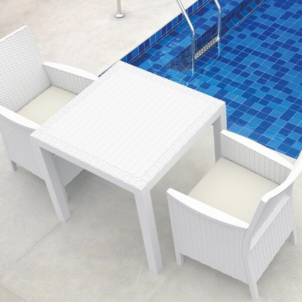 This arm chair is made of durable resin that is reinforced with glass fibre, making it perfect for high traffic outdoor areas. The resin is also UV protected, meaning it won’t fade in the sun. Plus, the non-metallic frame means this chair will never unravel, rust or decay. It’s available in three versatile colours – dark grey, white or brown – and comes with a one year warranty. Whether you’re looking to furnish your Bistro, cafe or garden, this chair is the perfect option for outdoor dining.