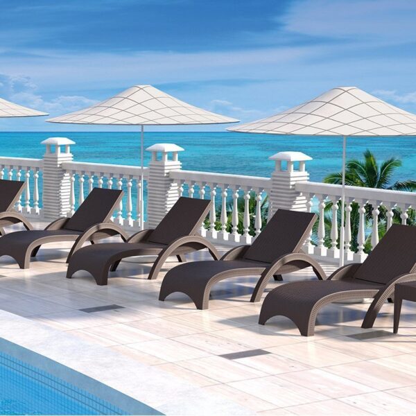 The Resin Weave Outdoor Sun Lounger is made from an extremely durable weather-resistant resin; its colour will not fade. Its non-metallic frame will never unravel, rust or decay making it perfect for high traffic outdoor hospitality areas. This stackable sun longer comes with 5 position backrest, hidden wheels and anti slip rubbers.