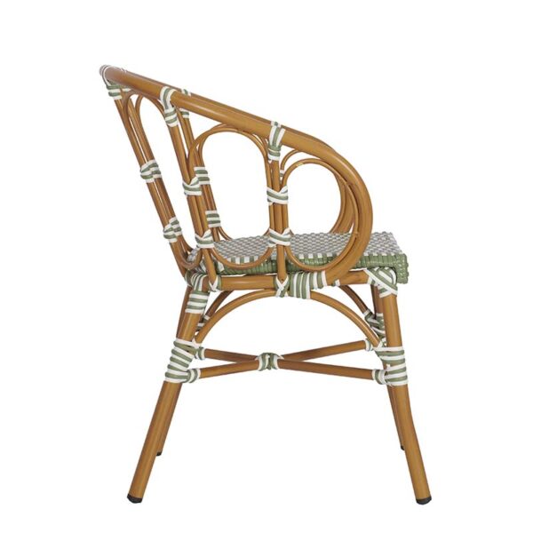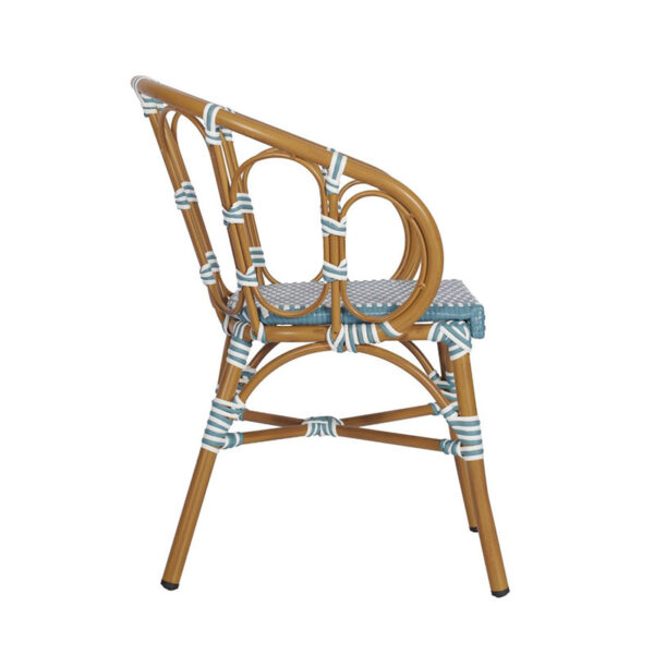 A modern twist on the classic bistro chair with a sleek dual-color weave. Available in 2 color options, this chair features a durable EPC aluminum frame for long-lasting and water-resistant qualities. With its stackable design for easy storage and flat PE weave, it’s the perfect choice for any space. Upgrade to the Side Chair option for even more versatility.