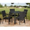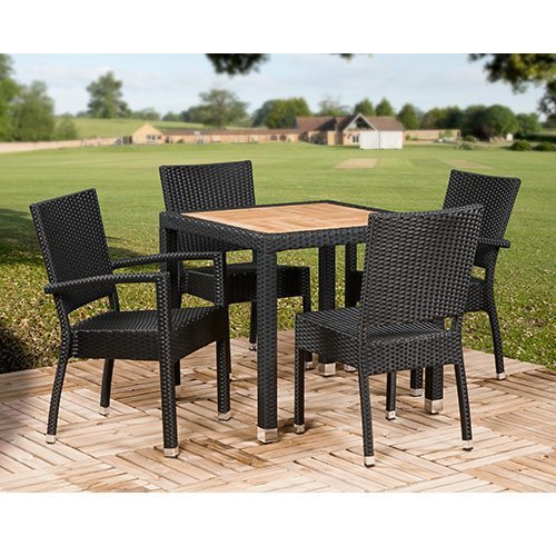 The Sorrento weave outdoor seating range is one of our most popular ranges. This side chair is perfect for any restaurant, hotel, café, bistro or coffee shop that wants to add a touch of style and practicality to its outdoor space. The black flat PE resin weave is stylish and easy to clean, while the aluminium frame ensures durability. This side chair can be stacked up to 6 high, making it easy to store when not in use.