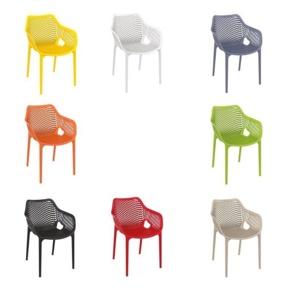 The Spring stacking indoor or outdoor Arm Chair is a fun and beautifully designed chair. This chair is made from polypropylene and is glass fibre reinforced, making it a strong and durable choice. Therefore, the Spring is both stylish and practical. The spring is suitable for indoor and outdoor use and comes in a variety of colours, so you are sure to find one to suit your dining area.