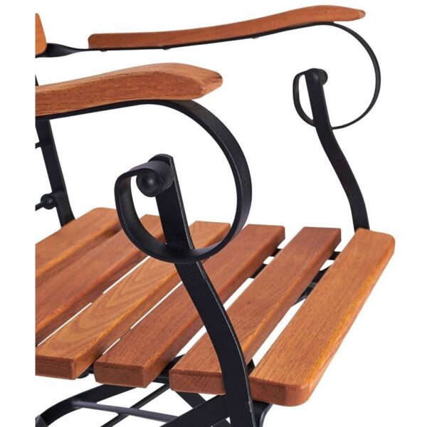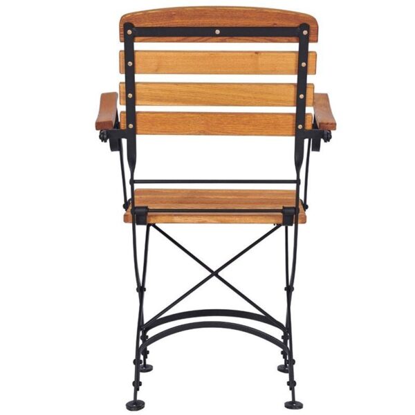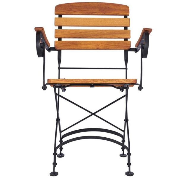 The Terras Folding Arm Chair is a popular choice for outdoor events and gatherings. It has a solid steel folding frame that is easy to set up and take down, and the slatted wood seat provides superior comfort. This chair is also available in an side chair style or with a rectangular or square table. The oiled finish protects the wood from the elements and ensures long-term durability.