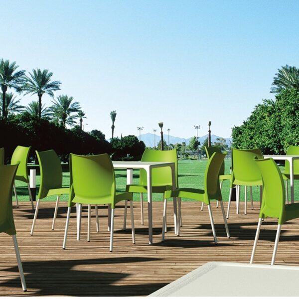Add a unique and colorful flair to your business space with our Vida Polypropylene Stacking Side Chairs! Made from recyclable polypropylene, these durable chairs are suitable for both indoor and outdoor use. And thanks to their lightweight, comfortable design, you can easily stack them up to six high when it’s time to clean. What really sets these chairs apart is the fun colour palette! Spruce up your dining room with the 5 vibrant options – from classic black and white to vibrant red and green – easily standing out among competitors. And when it comes time to clean them, the wipeable surface makes this an easy task. Create a space that is as unique, functional and sustainable as you with Vida Polypropylene Stacking Chairs!