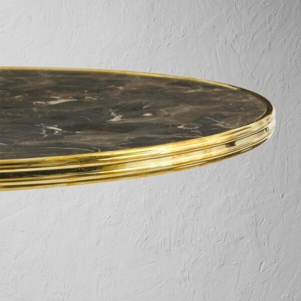 For a touch of luxury, add the Halo Deluxe table top to your restaurant, cafe or bistro dining area. This elegant piece comes in three beautiful finishes and the black tops are finished with a gold metal rim and will withstand heat, cigarette smoke, knocks, and cleaning products. The metal outer ring adds a touch of style and shine to any table and best of all these tops can be used both indoors and outdoors. In addition the tops are scratch resistant and UV resistant which means these tops will stay looking their best, no matter what Mother Nature or your customers put them through.