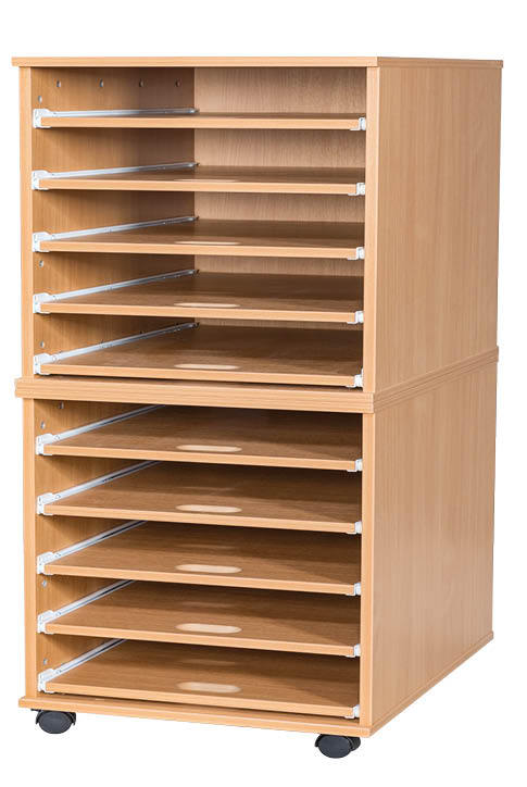 A2 Mobile or Static Paper Storage Unit – 10 Sliding Shelves