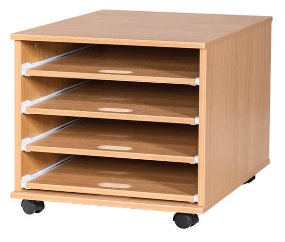 A2 Mobile or Static Education Paper Storage Unit – 4 Sliding Shelves