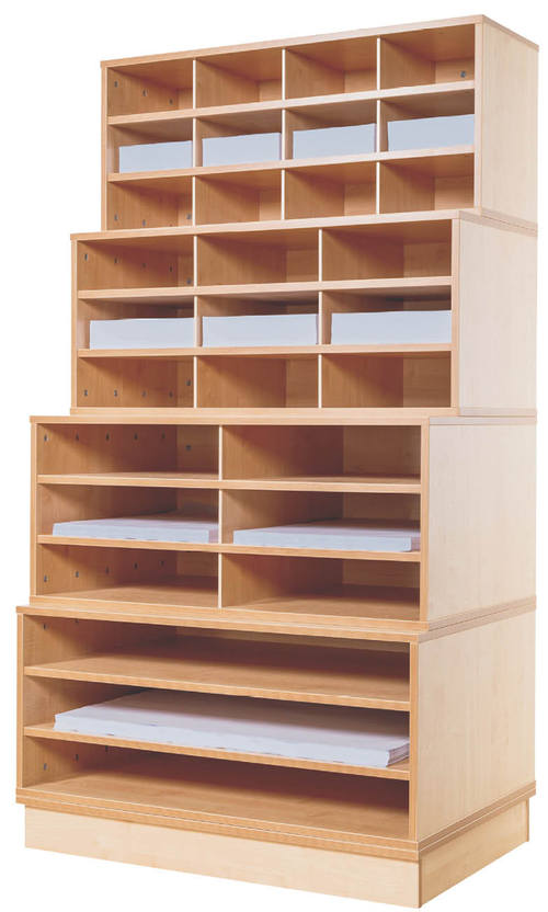 The Kubbyclass Paper Storage Waterfall is perfect for keeping all your paper and card organized in one place! In 18mm Maple MDF and finished with a 2mm plywood bump resistant edge. These units are Ideal for all your storing needs such as paper, maps, or artwork in any school, office, nursery or educational environment.