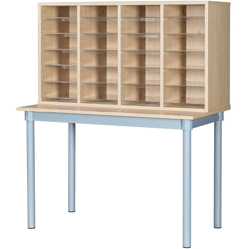 The 24 Space Pigeonhole Unit is an essential unit for a busy school or office. Ideal for sorting post & distributing mail. All pigeonholes are manufactured from quality 18mm MDF and are available in 5 colours. All the acrylic shelves are fully adjustable with 32mm hole spacings and come complete with a label holder for the front.