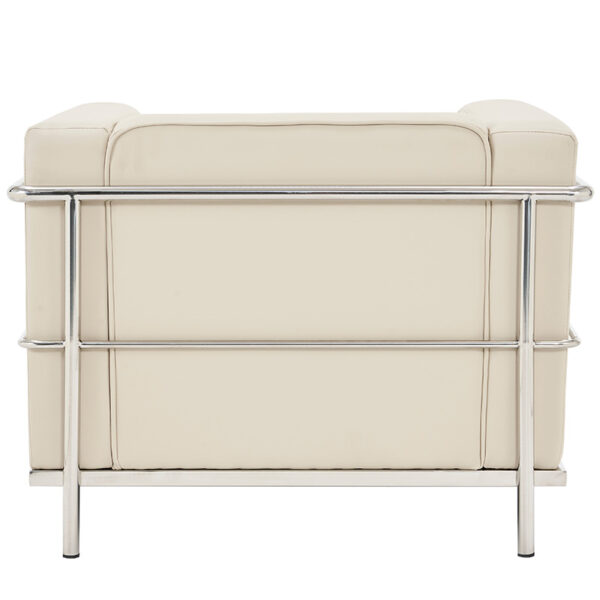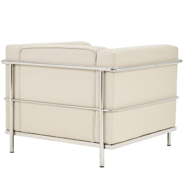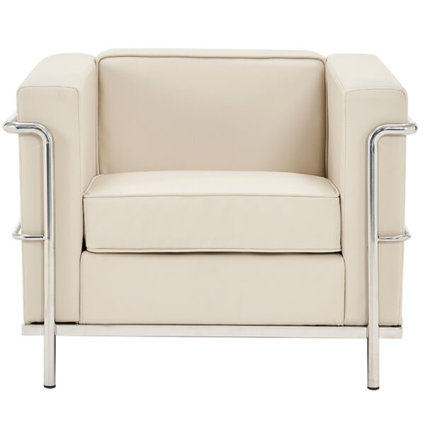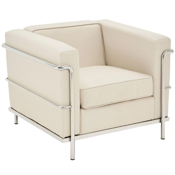 Belmont Cubed Ivory Leather Faced Reception Chair with Stainless Steel Frame