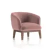 The Lulu Armchair in a delightful Old Rosa fabric is a perfect blend of comfort and style. Featuring wooden legs that add a touch of natural elegance, this armchair seamlessly combines classic charm with modern comfort, making it a standout addition to any space.The velvet upholstery radiates timeless sophistication, elevating your decor with its luxurious texture and rich hue. Sink into the plush cushions and enjoy unmatched relaxation, whether unwinding after a long day or enjoying a quiet moment.The sturdy wooden legs provide reliable support while infusing warmth and character into your living area. Expertly crafted, they complement the velvet fabric beautifully, creating a harmonious balance of textures and tones.