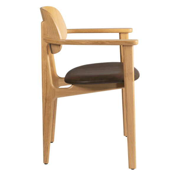 Discover the Relish Armchair with Upholstered Seat Pad, where modern aesthetics meet exceptional comfort. This stylish armchair features a wide faux-leather upholstered seat, available in three timeless colours, paired with a handcrafted curved backrest that ensures both sophistication and relaxation.