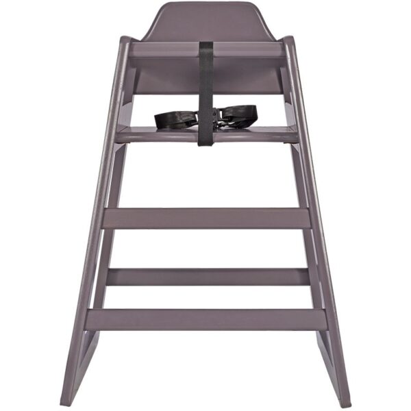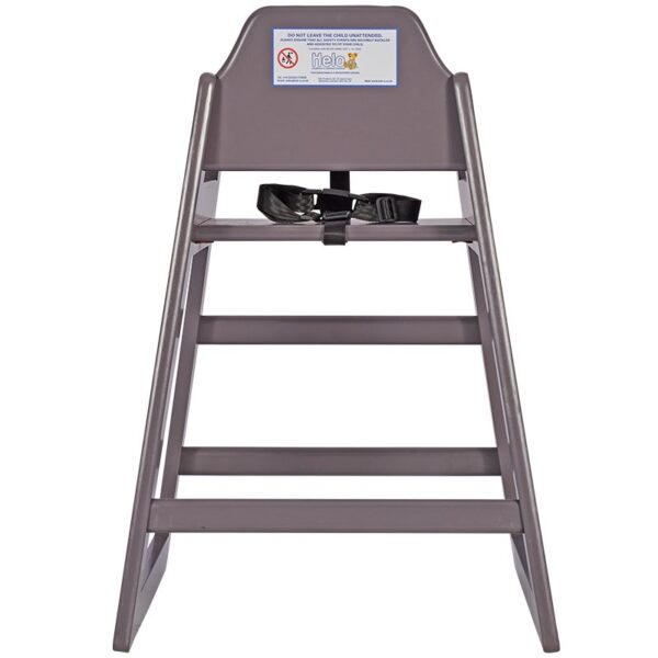 The Bambino Wooden Stackable Baby High Chair is Crafted from solid rubberwood and finished with a light grey hue, specifically designed for babies and toddlers up to 36 months old, providing a secure and comfortable seating option as they embark on their journey of discovering new flavors and textures. The adjustable waist strap and safety harness guarantee your child’s utmost safety. Cleanup time can be a breeze for busy restaurants, thanks to the wipeable finish of this high chair. Simply grab a damp cloth, wipe away any mess, and voila! It’s as good as new, ready for the next mealtime adventure. Say goodbye to cluttered spaces and hello to convenient storage options as this high chair allows you to stack up to four high.