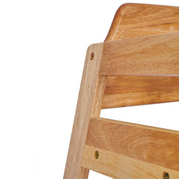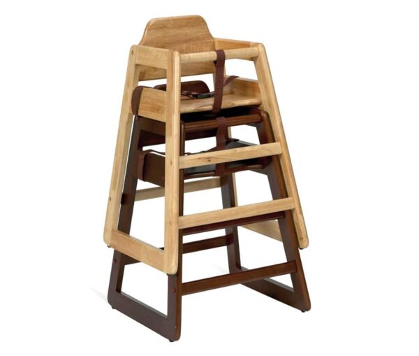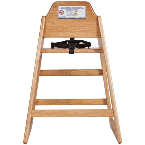 The Bambino Wooden Stackable Baby High Chair is Crafted from solid rubberwood and finished with a natural finish, specifically designed for babies and toddlers up to 36 months old, providing a secure and comfortable seating option as they embark on their journey of discovering new flavors and textures. The adjustable waist strap and safety harness guarantee your child’s utmost safety. Cleanup time can be a breeze for busy restaurants, thanks to the wipeable finish of this high chair. Simply grab a damp cloth, wipe away any mess, and voila! It’s as good as new, ready for the next mealtime adventure. Say goodbye to cluttered spaces and hello to convenient storage options as this high chair allows you to stack up to four high.