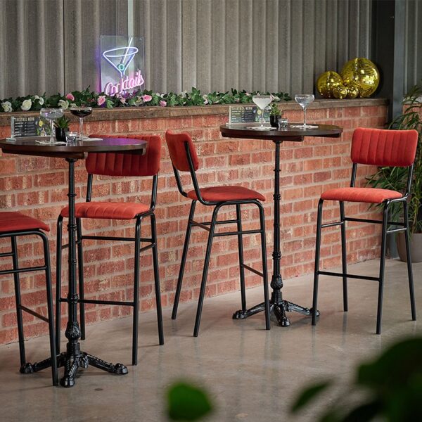 You’ll love the Nashville Bar Stool – vintage brown faux suede for its sleek, contemporary style and its unbeatable durability. The bar stool features an easy to clean, antibacterial faux suede seat and back pad that can withstand up to 130,000 rubs. The frame is crafted from powder-coated steel in semi matt black. This sophisticated bar stool is perfect for modern restaurants, hotels, cafes, and pubs looking for a statement piece to enhance their indoor dining spaces. With six different vintage finishes to choose from, the Nashville ornately captures classic charm and modern style..