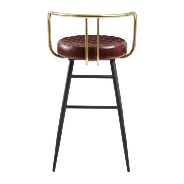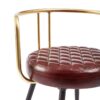 Introducing the Torino Cocktail Bar Stool – Red Wine Leather: a combination of modern industrial design and luxury, perfect for any interior setting! Showcasing a high quality genuine leather quilted seat pad in an eye-catching diamond pattern, this stunning stool provides both comfort and style. Here, form meets function as the gold metal armrests provide support while you lounge. The frame and tapered legs are made of iron metal with a durable matt black powder-coating, ensuring that your stool looks stylish for years to come.