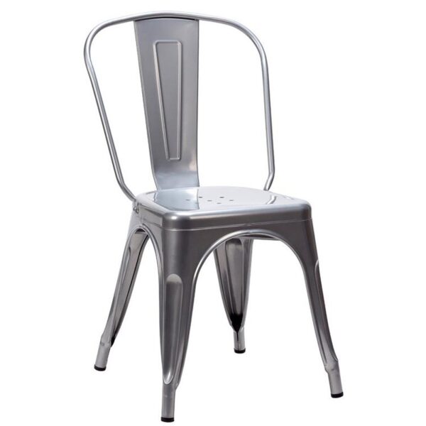Look no further than the French Bistro Industrial Side Chair in Gunmetal. This contemporary Tolix-style chair features a unique design that is sure to add a touch of class to any setting. It is finished in natural steel with a Gunmetal finish, and comes with an optional Solid Ash seat pad. The chair is also stackable, making it easy to store when not in use. Plus, it comes with a 1 year guarantee. So why wait? Order your French Bistro Industrial Side Chair today!