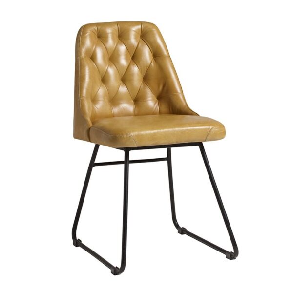 This exquisitely crafted piece of furniture utilizes real quilted leather to add texture and complexity to any room. A modernized version of a classic design, the chair brings together classic and modern elements to create an eye-catching accent piece. The sturdy sled frame of solid metal ensures it will last through many years of use. And if that isn’t enough, this chair’s leather color is beautifully unique – the genuine vintage leather color will vary slightly, so no two pieces will look the same. Show your guests the statement-making piece that is the Harland Side Chair in Black Leather – its beauty and quality are perfect for someone with an eye for the finer things in life!