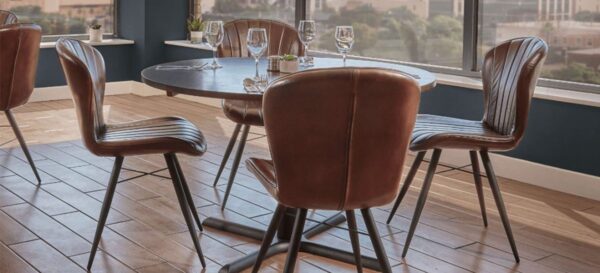 With a striking seashell design, this chair is an elegant statement piece for any space. Woven with top quality genuine leather and finished in luxurious Genuine Leather, this chair adds a touch of rich sophistication to your home or workspace. The modern tapered back and shaped seat provide the ultimate comfort for lounging and banquets alike; rich fluted vertical stitching adds to its designer feel. The iron metal frame is finished in a matt black powder coating which provides durability and contemporary style without compromising on clean lines; floor protectors also stop scratches and marks while staying true to its sleek design. Perfect for hospitality, workspace or student living – the Scallop Side Chair is designed to fit in with any lifestyle while turning heads with its timeless beauty.