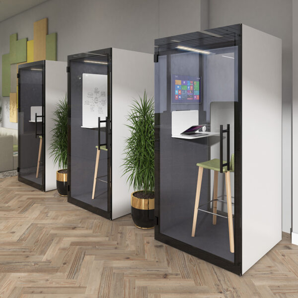 The Solo phone booth combines design, functionality, and privacy to create the perfect space for focused work and professional meetings.