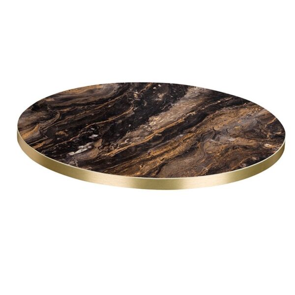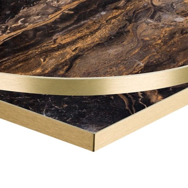 25mm Marbled Cappuccino High Gloss Laminate Table Tops with Gold Effect Edging