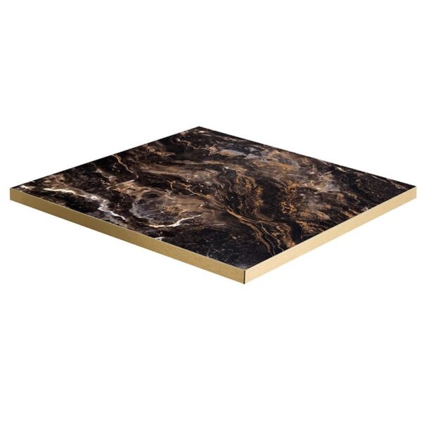 These superior quality table tops provide a stunning luxurious look to any interior with their sleek, glossy surface and perfect 2mm Contrast Gold ABS Edging. Designed for busy hospitality settings, these tabletops are made with 25mm Contract grade laminate that is scratch resistant and heat resistant up to 180ËšC- making them suitable for any indoor environment. In addition, they offer an easy clean and wipeable surface. These marble laminate table tops are the ideal way to get the effect of luxury cappuccino marble at a fraction of the cost. Whether you’re looking to spruce up a fine dining establishment or refresh an existing space- rest assured these tables will stand out above the rest.