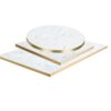 Acquaint yourself with our range of luxurious White Carrara Marble laminate tops with striking gold edge. This luxurious table top is perfect for those who want to add a touch of elegance to their dining experience. The sleek White Carrara marble laminate top is both scratch and heat resistant, making it ideal for busy Restaurants, Cafes or Bistros. The striking gold edging adds a touch of glamour and makes these tables really stand out from the crowd, whilst being impact resistant.