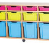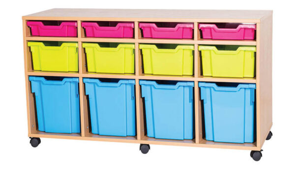 This 12 tray combination unit is a high quality, UK manufactured unit. This Unit includes 12 Gratnells trays, consisting of 4 Shallow trays and 4 Deep trays and 4 Jumbo Trays that are available in a range of colours,