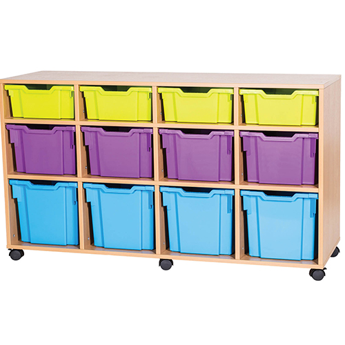 This 12 tray combination unit is a high quality, UK manufactured unit. This Unit includes 12 Gratnells trays, consisting of 4 Deep trays, 4 Extra Deep and 4 Jumbo Trays that are available in a range of colours,