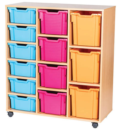 This 13 tray combination unit is a high quality, UK manufactured unit. This Unit includes 13 Gratnells trays, consisting of 6 deep trays and 4 extra deep trays and 3 Jumbo Trays that are available in a range of colours,