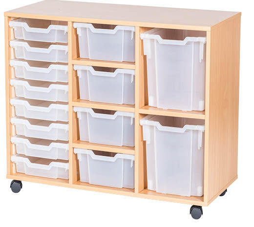 14 Mixed Tray Triple Bay Mobile or Static Classroom Storage Unit – 779mm High