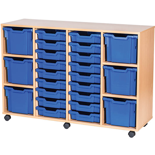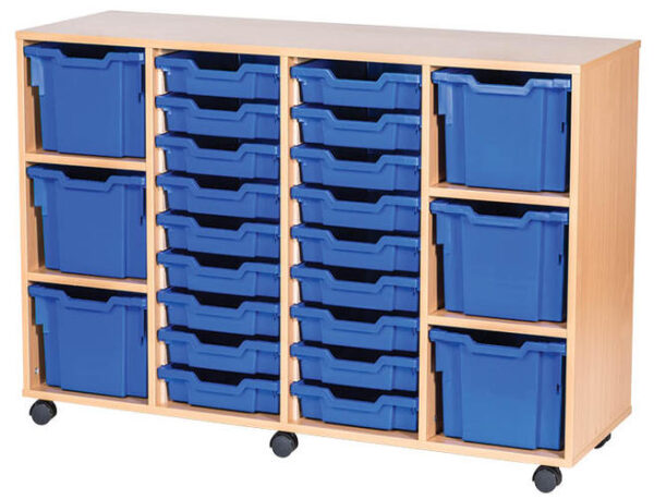 18 Shallow and 6 Extra Deep Mixed Tray Quad Bay Mobile or Static Classroom Storage Unit – 861mm High