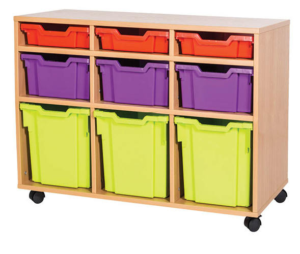 This 9 tray combination unit is a high quality, UK manufactured unit. This Unit includes 9 Gratnells trays, consisting of 3 Shallow trays and 3 Deep trays and 3 Jumbo Trays that are available in a range of colours,